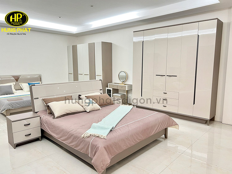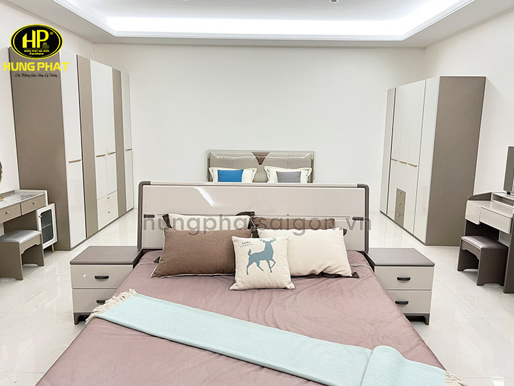- Combo gồm: 1 giường ngủ, 1 tủ quần áo, 2 táp đầu giường.