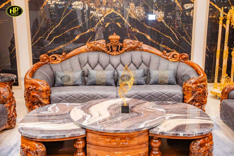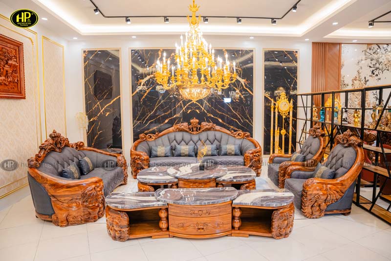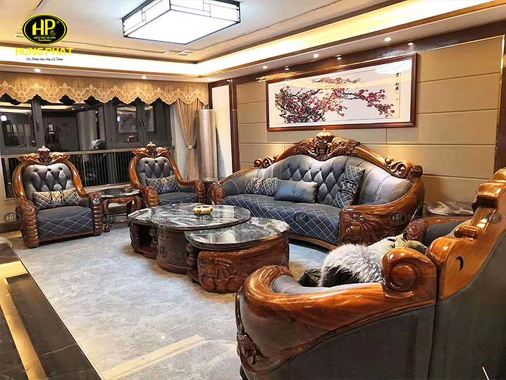 Hình ảnh thực tế Bộ Sofa Tân Cổ Điển Phòng Khách Cao Cấp SF-E08 tại showroom nội thất Hưng Phát Sài Gòn.