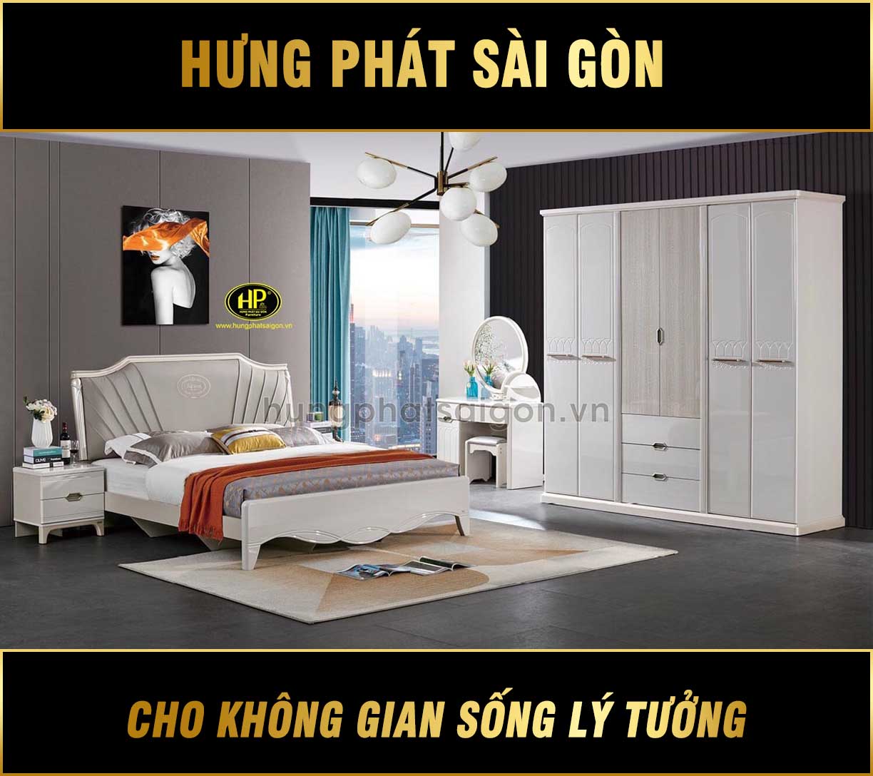Sản phẩm được phủ lớp sơn PU bóng, giúp tái tạo màu gỗ tự nhiên đẹp và tăng thêm vẻ gần gũi cho không gian phòng ngủ. Bên cạnh đó, Hưng Phát Sài Gòn cam kết bảo hành sản phẩm trong vòng 5 năm, đảm bảo chất lượng và sự hài lòng của khách hàng tuyệt đối.