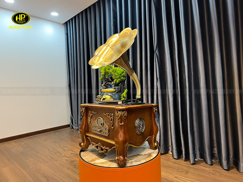 | Chất liệu | Thân máy làm từ gỗ sồi Mỹ cao cấp Loa kèn đồng thau sơn công nghệ chống vân nước, vân tay cao cấp. |