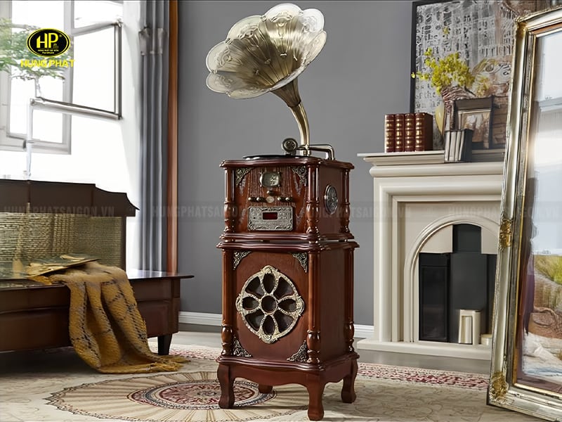 | Chất liệu | Thân máy làm từ gỗ sồi Mỹ cao cấp Loa kèn đồng thau sơn công nghệ chống vân nước, vân tay cao cấp. |